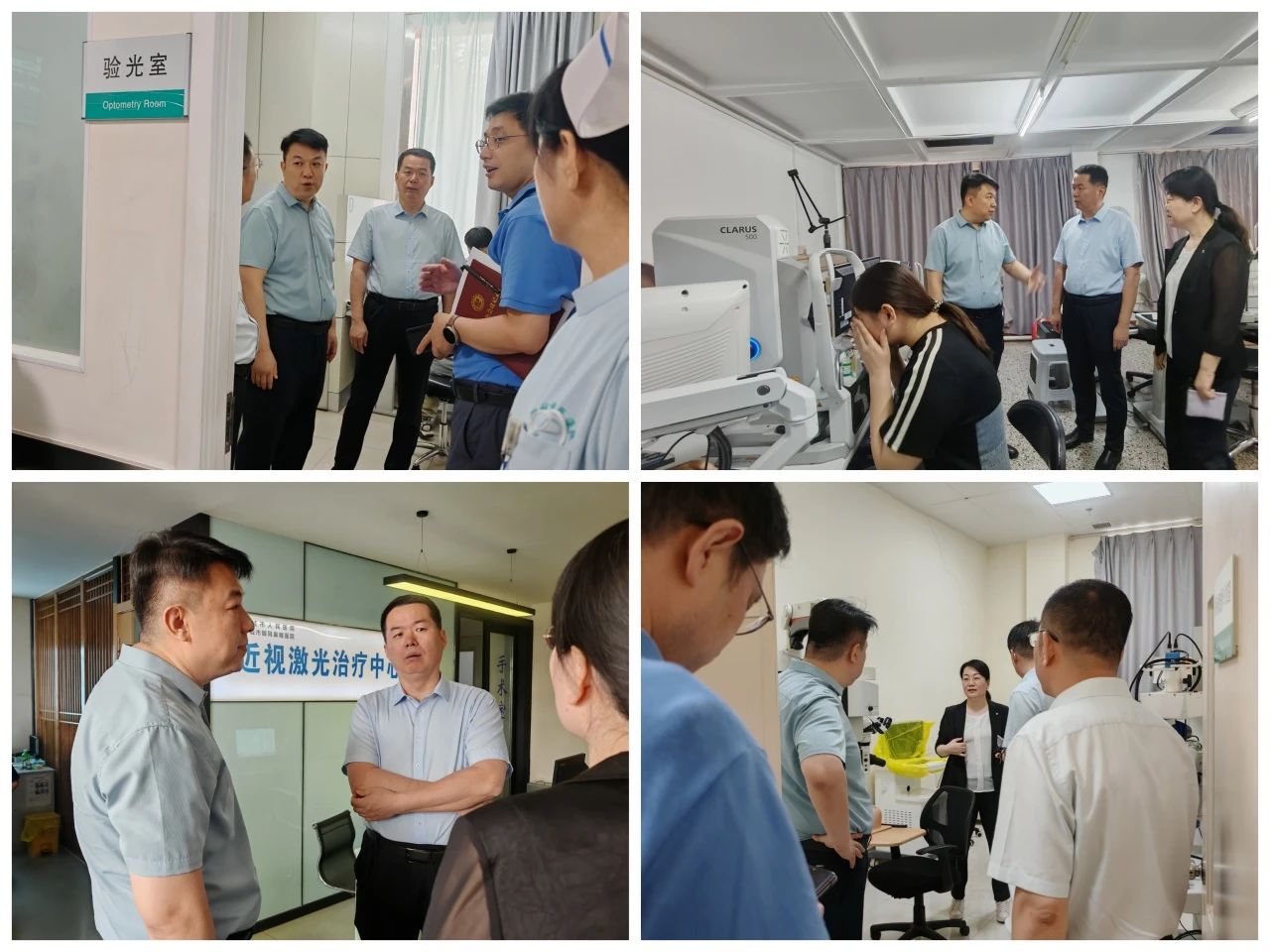 在聊城市人民医院副院长刘海峰,聊城市人民医院眼科主任由新英的陪同下,明辉一行参观了眼耳鼻喉医院专家门诊,特检室,视光学科,近视激光治疗中心,白内障中心,两病区,示教室,了解了医院在青少年近视防控、各类眼科手术开展、住院患者管理等方面的特色做法,详细观摩了先进的眼科检查设备和治疗仪器的临床应用,深入交流了医教研协同发展、人才队伍建设等专业发展情况。