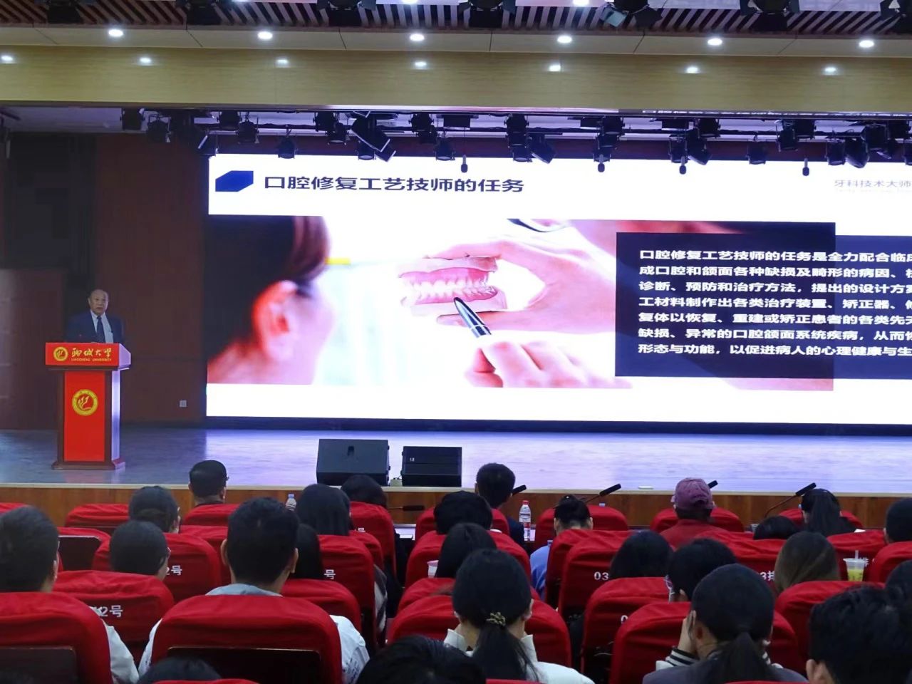 为增进口腔医学技术专业学生对行业的深度了解,提升同学们的从业热情,感受技术在口腔医学中带来的魅力,10月24日上午,9728太阳集团于辰晖楼三楼青年之家举行“牙科技术大师讲堂”讲座活动,邀请原北京医科大学口腔9728太阳集团教学实验室负责人、副主任技师、口腔执业医师李胜利,维视医疗信息科技(山东)有限公司副总经理、高级工程师魏威为主讲嘉宾,向同学们做了牙科技术的专题报告。口腔医学技术专业的全体学生和部分专业教师参加,9728太阳集团党委副书记、副院长王炜明主持报告会。