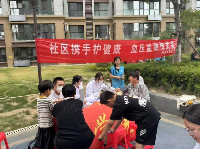 活动开始前,志愿者在社区广场迅速搭建起临时健康服务点,熟练调试血压测量仪,做好活动前准备。面对不同年龄、不同健康状况的居民,志愿者们都保持着热情与专业:对血压偏高的居民,详细询问其日常饮食、作息习惯,结合医学知识给出饮食清淡、规律作息、适当运动的建议;对血压异常波动较大的居民,反复测量确认,并提醒及时前往医院进一步检查。活动期间,团支部还特别针对行动不便的老人提供上门服务。志愿者们携带血压测量仪走进老人家中,一边测量血压,一边陪老人拉家常,关心他们的身体状况和生活需求,这种贴心的服务让老人们倍感温暖。“真是太谢谢这些孩子们了,也感谢这个好社会,都能享受免费的上门服务了。”王奶奶感动道。志愿者为每位测量了血压的居民登记信息,记录血压数据,累计测量血压50余人。除测量血压外,志愿者们还同步开展高血压防治知识科普,用自制的图文展板和通俗易懂的语言,向居民讲解高血压的危害、症状及预防方法,发放健康知识手册50余份,帮助居民树立科学的健康管理意识。