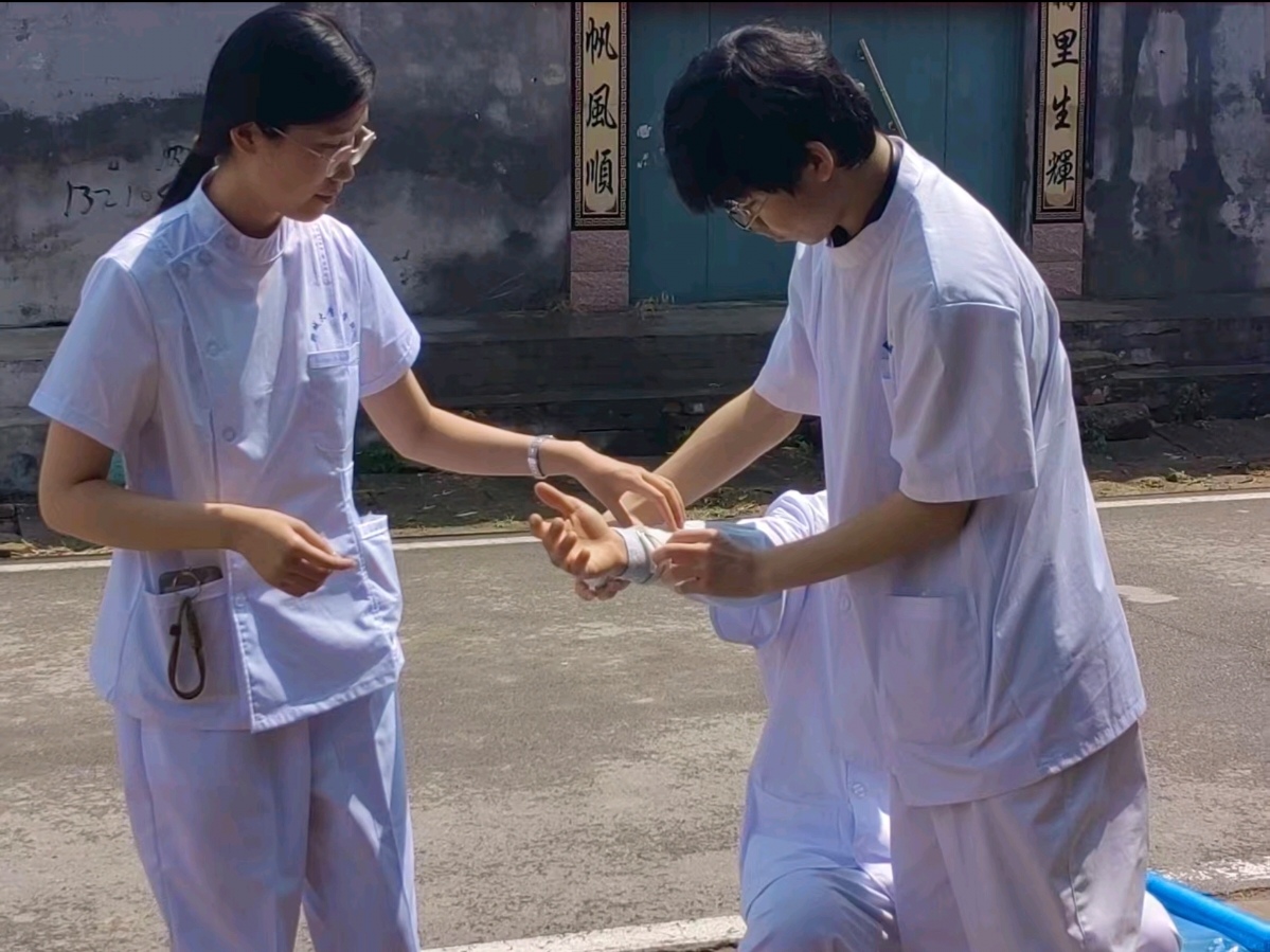 在这次活动实践中,我和同伴负责配合主讲人演示包扎实操。出发前总担心记混步骤,我俩对着笔记把环形包扎的起始绕圈、螺旋包扎的重叠幅度都过了一遍又一遍,直到能默契配合。