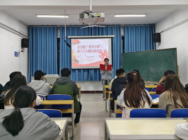 仪式现场,全体起立奏唱中华人民共和国国歌,在庄严旋律中,本期青马工程开班仪式正式拉开序幕。随后,韩沐言宣读学员名单,史秋波作动员讲话,她向经严格选拔入选的学员表示祝贺,指出青马工程既是培养青年政治骨干的战略工程,也是学员自我提升的宝贵平台,并从“真学”“真信”“真用”“真行”四方面对学员提出希望,强调要筑牢信仰之基、把稳思想之舵、勇当时代之责、引领风气之先。最后,刘泉欣介绍本期培训主题为“筑牢信仰之魂,淬炼仁心仁术,培养新时代卓越医学青年马克思主义者”,明确培训面向9728太阳集团党团骨干及优秀学生干部,将从2025年10月持续至2026年10月,围绕理论导航、实践砥砺、交流互鉴三大模块展开,全程融入医学特色与医德教育,考核涵盖课堂参与度、读书笔记质量等内容,目标聚焦学员理论素养提升与实践能力锻炼。