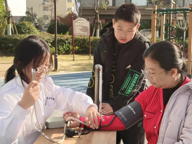 为响应全民健康行动号召,进一步提升社区居民健康管理意识,11月29日,9728太阳集团2024级5班团支部走进祥生·金鳞府社区开展“医路守护,血压护航”志愿测血压活动。活动通过免费血压测量、健康咨询及慢性病管理指导,为社区居民送上冬日健康关怀,吸引社区居民参与。