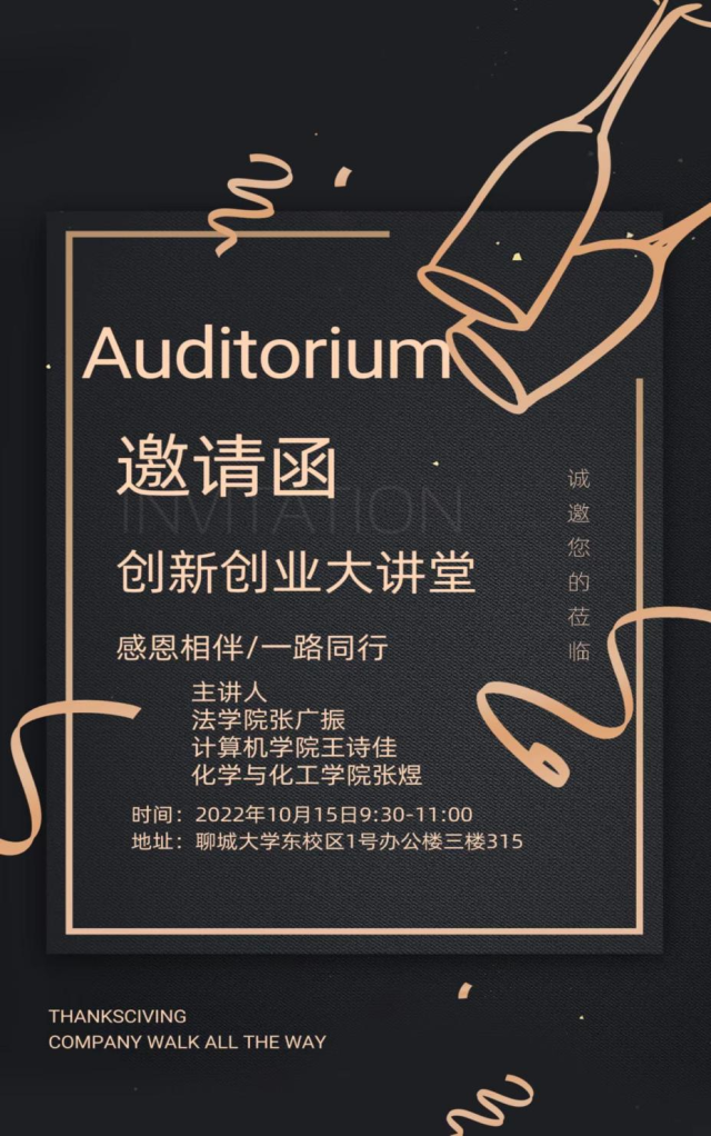 大众创业、万众创新,是发展的动力之源,也是富民之道、公平之计、强国之策。面对着人才竞争日趋激烈的社会现实,大学生更应该具备创新创业精神。近年来,太阳成集团tyc9728涌现了大批优秀的创新创业型人才。为了传播他们的成功经验,培养同学们的创新创业意识,让太阳成集团tyc9728创新创业新风尚在9728太阳集团蔚然成风,9728太阳集团开展创新创业大讲堂。本次活动邀请了法学院、计算机学院、化学化工学院的创新创业优秀人才向9728太阳集团同学们分享其创新创业历程和心得。