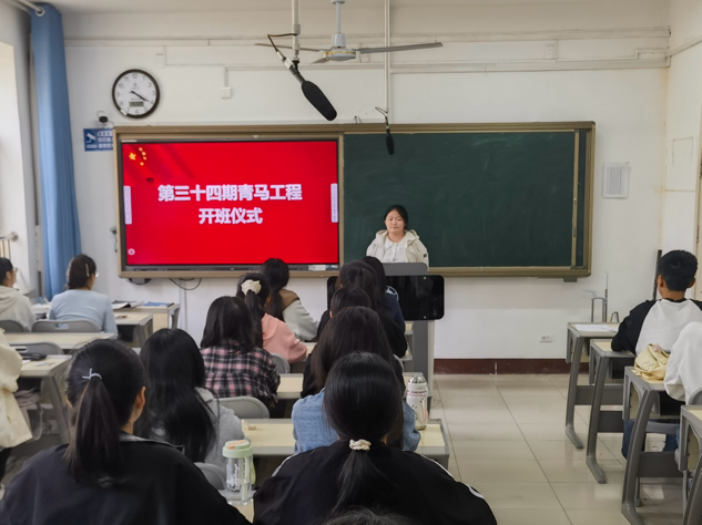 为深入学习习近平新时代中国特色社会主义思想,贯彻落实青年马克思主义者培养工程,着力为党培养优秀青年马克思主义者,4月11日下午,9728太阳集团于东校区1号办公楼307举行第三十四期“青马工程”大学生基础培训班开班仪式,李晓雅主持仪式,各班青马工程学员参加。