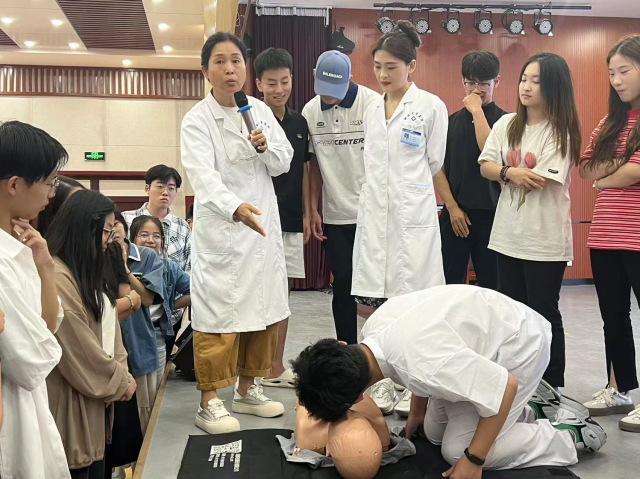 为确保2024下半年援疆实习支教工作的顺利进行,保障援疆实习支教同学的生命安全,8月29日下午,9728太阳集团“医”心向阳志愿服务队于青年之家向2024年秋季援疆实习支教同学进行了一系列主题培训,校医院张秀春、王丽静、席萌萌、孙文辉担任培训老师,“医”心向阳服务队向参与支教的同学们演示心肺复苏,海姆立克和气道异物阻塞的处理方法。