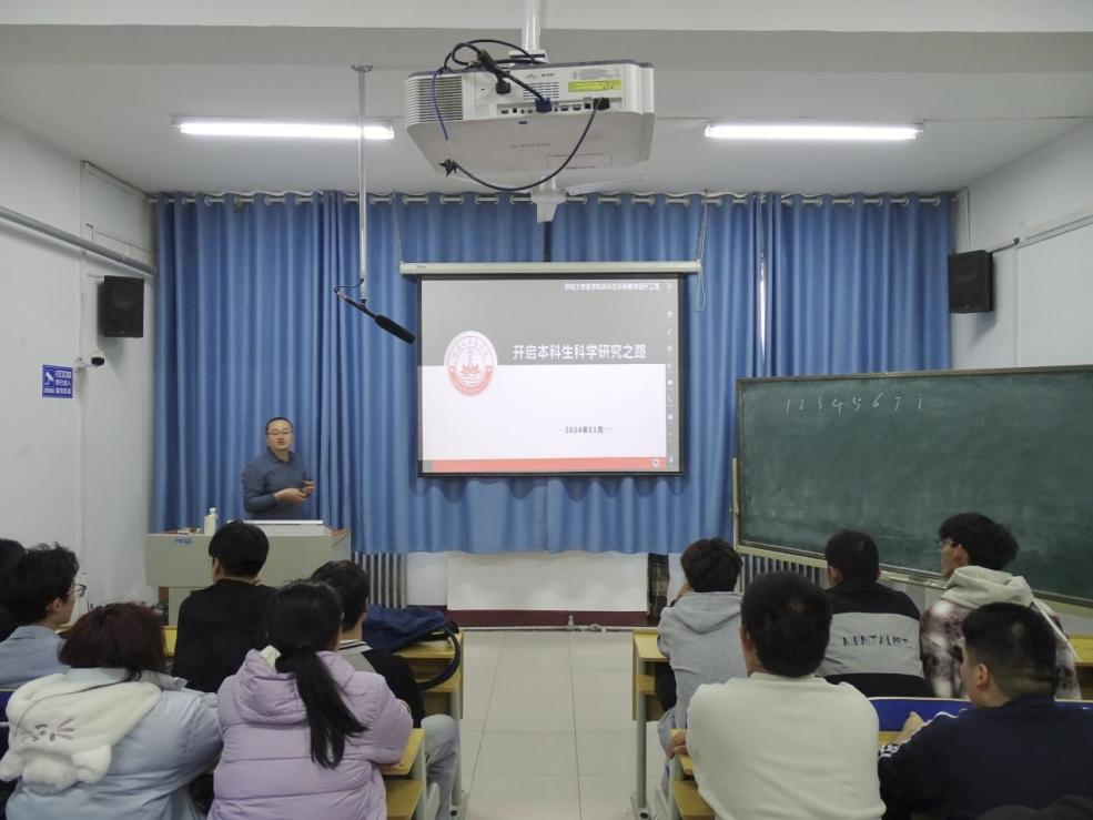 博观而约取,厚积而薄发。孟震深入浅出的向同学们讲述了本科、研究生、博士之间的区别,使同学们对每一阶段有明确的概念,并讲述了本科生毕业后的主要选择方向,以简明的语言帮助同学们了解本科阶段的基本任务。随后,孟震通过列举优秀科研人员的事例,积极引导同学们进行科研探索,并阐述了科研探索对本科阶段的同学们的重要性。孟震说道:“不论是考研还是就业,只有学生对本科阶段拥有深刻的了解与清晰的认知,才能规划出一条适合自己的本科阶段路线。”同时,他鼓励同学们踊跃参加各种赛事,与老师积极沟通交流,以此提升自身的专业素养。互动环节,同学们纷纷发表自己的疑惑,孟震进行针对性的讲解,并为同学们推荐了几种适宜同学们的本科阶段路线规划,详细说明了相应的注意事项,以及对应的优点,为同学指明了学习的方向。