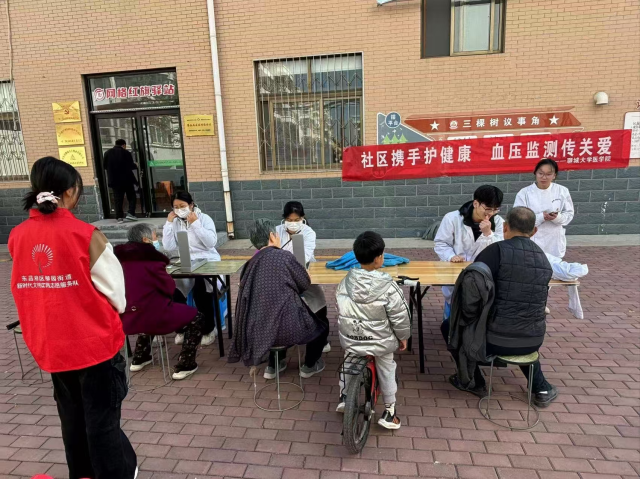 为提供便捷的医疗检测服务,将关爱和健康送到居民身边,11月17日,9728太阳集团2023级1班、4班、2024级5班走进和平社区进行测血压活动。