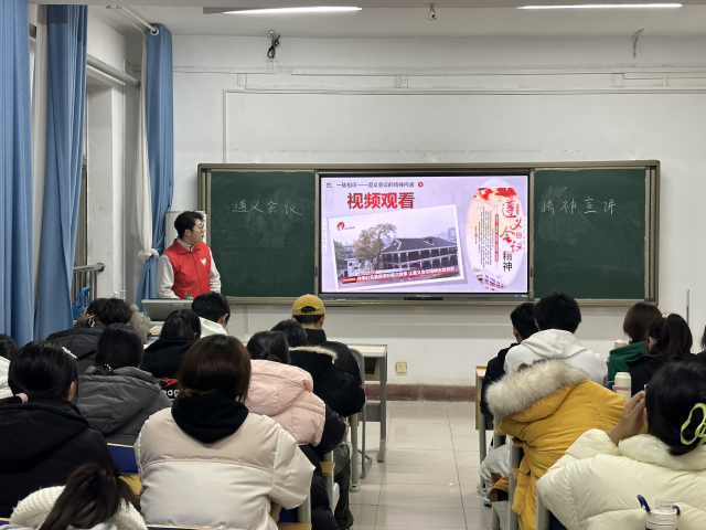 活动开场,钟翠通过PPT,深入解读了遵义会议的精神内涵。他讲述了遵义会议前后中国革命面临的复杂局势,详细列举了红军长征途中的艰难险阻,兵力损耗的惨烈数据,以及战略抉择的重要性,每一个案例都生动形象,让人如临其境。钟翠用数据和事实说话,清晰地展现了遵义会议在生死攸关的时刻,如何为党和红军指明了前进的方向,挽救了革命事业。讲解完毕后,钟翠播放了一段聚焦遵义会议的视频,视频中,珍贵的历史影像资料缓缓流淌,伴随着深刻的专家解读,让在座的同学们仿佛穿越时空,置身于那个充满热血与信念的年代。在接下来的互动环节中,同学们积极提问,问题涵盖遵义会议对当代青年价值观的启示、会议中的关键决策细节等,钟翠都一一给予详细解答,并与大家展开热烈讨论,进一步加深了同学们对遵义会议精神的理解。