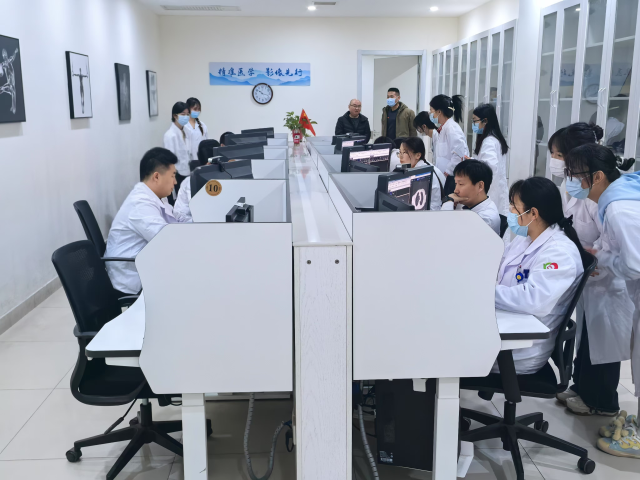 精准医学,影像先行。活动当天,同学们早早抵达人民医院医学影像科,孙宗博和孙晓楠带领同学们系统地参观了医学影像科,对各影像设备进行了详细的介绍,使同学们对其使用方法及注意事项有了初步的了解。通过参观集中阅片室,同学们与各位老师的密切交流,了解影像处理的原理及人工智能在处理影像数据时的应用。同时,在白东芳的指导下,同学们有序开展了影像科全流程检查调研活动,以调查问卷的形式,和病患们进行直接的交流沟通。通过线下与线上相结合调研的方式,更全面的了解到病患在影像检查的需求,以便志愿者做出相应的调研报告,为病患排忧解难,为放射科全流程检查的顺利进行尽一份绵薄之力。最后,白东芳、孙宗博对本次活动进行了总结,他们指出,理论知识是实践的基石,没有扎实的理论基础,实践操作就会变得盲目而无效率,同时,实践是检验理论的试金石,只有将理论知识应用于实际情境中,才能真正理解和掌握其精髓。