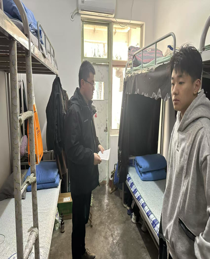 此次检查内容覆盖多个维度。在人员管理方面,严格检查夜不归宿情况,全力保障每一位学生的人身安全,切实落实校园安全管理制度,维护学生正常作息秩序。在电器使用管理方面,着重排查热得快、电饭锅、电热壶等大功率违规电器,此类大功率电器在使用过程中极易致使线路过载,成为引发火灾的重大隐患,严重威胁学生宿舍的消防安全。在用电行为规范方面,工作人员仔细检查私拉乱接电线、人员离开后仍继续充电等危险行为。与此同时,检查内容还包括宿舍内是否存在管制刀具、喂养宠物、吸烟、使用酒精炉等行为。检查结果表明,大部分宿舍展现出较强的安全意识,室内环境整洁有序,安全措施落实到位。但仍有部分宿舍存在插排未及时断电、电线随意缠绕、桌面杂乱等现象。针对这些问题,冯昌顺当场结合实际案例向同学们深入阐释了安全隐患可能引发的严重后果,并责令相关宿舍立即整改,确保宿舍环境绝对安全。