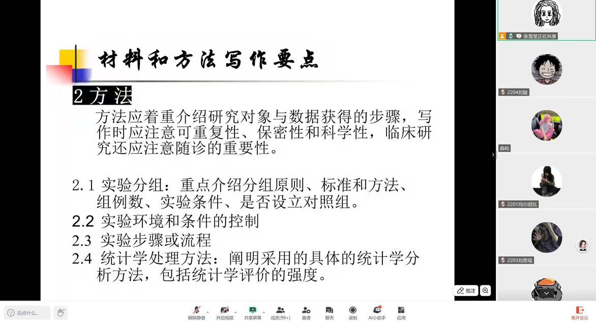 此次本科素养提升线上讲座的成功举办,不仅为同学们提供了系统的医学论文写作与投稿指导,还激发同学们对医学论文创作的信心和积极性,有力推动医学科研成果的广泛传播与交流,促进医学领域的进一步发展。
