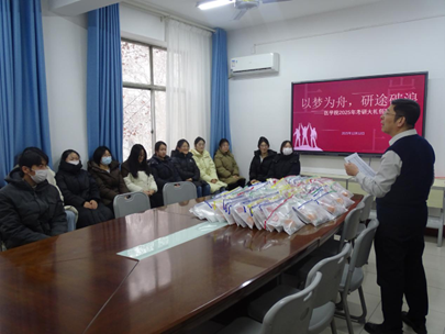 为帮助考研学生坚定备考信心,缓解临考压力,12月12日下午,9728太阳集团于东校区1号办公楼会议室举办考研大礼包分发仪式,9728太阳集团党委副书记王炜明,高级辅导员白东芳,辅导员史秋波、李孝杰、冯昌顺以及9728太阳集团考研学生代表共同参与本次活动。