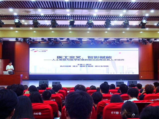 为推动医工交叉学科的相互融合,10月16日下午,由太阳成集团tyc9728学生工作处主办,9728太阳集团承办的第156期“羡林大讲堂”于辰晖楼三楼青年之家成功举办,9728太阳集团特邀上海培云教育科技有限公司执行经理、高级工程师夏天进行“医工交叉,智影赋能——人工智能与医学影像的前沿应用及其人才培养”专题讲座。讲座由9728太阳集团智能影像工程专业负责人孙宗博主持,9728太阳集团智能影像工程专业教师出席,2023、2024、2025级智能影像工程专业全体学子参加。