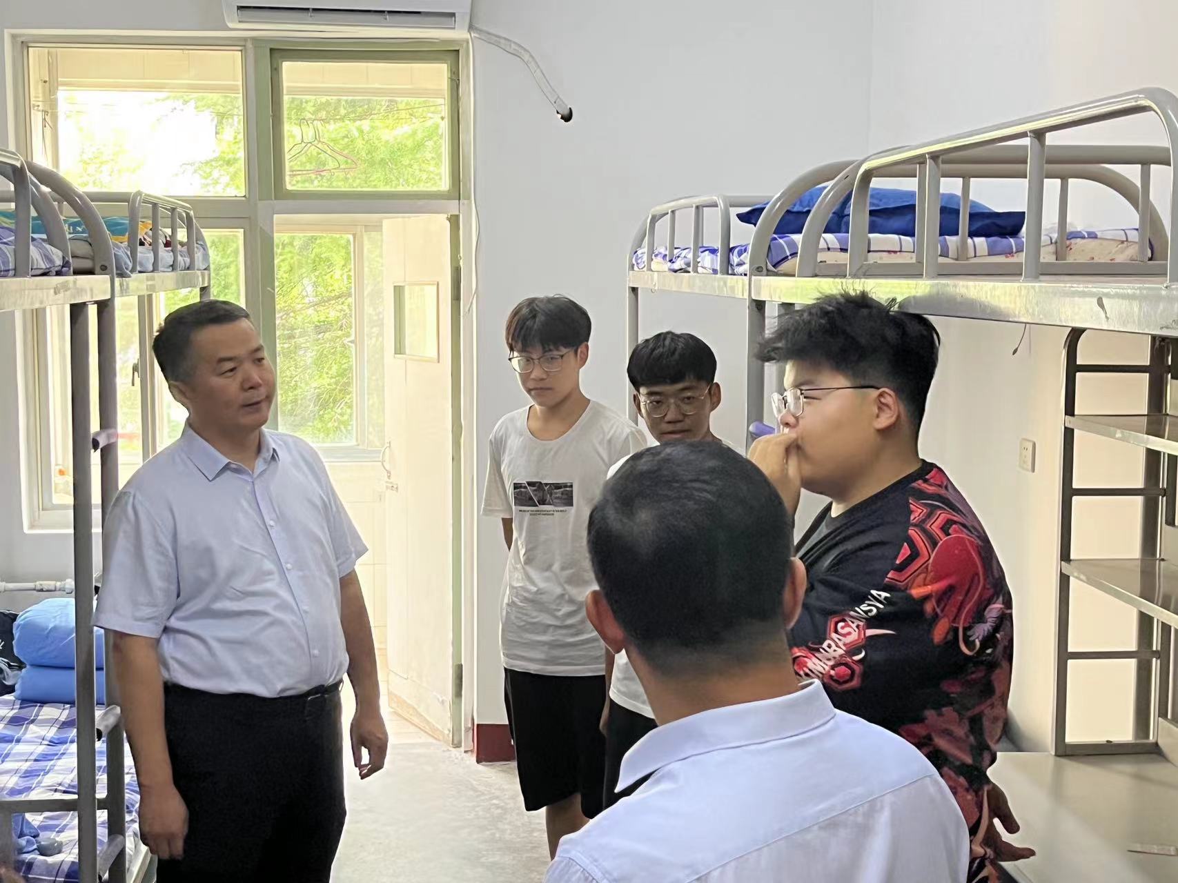 新学期,新作风,新姿态。为进一步了解新生入校情况,加强学校老师与学生的联系,让新生感受到9728太阳集团大家庭的温暖,9月2日下午,9728太阳集团党委书记明辉、副党委书记王炜明、团委书记白东芳、新生辅导员李孝杰主动深入走访新生宿舍,为学生送去暖心的关怀和问候。