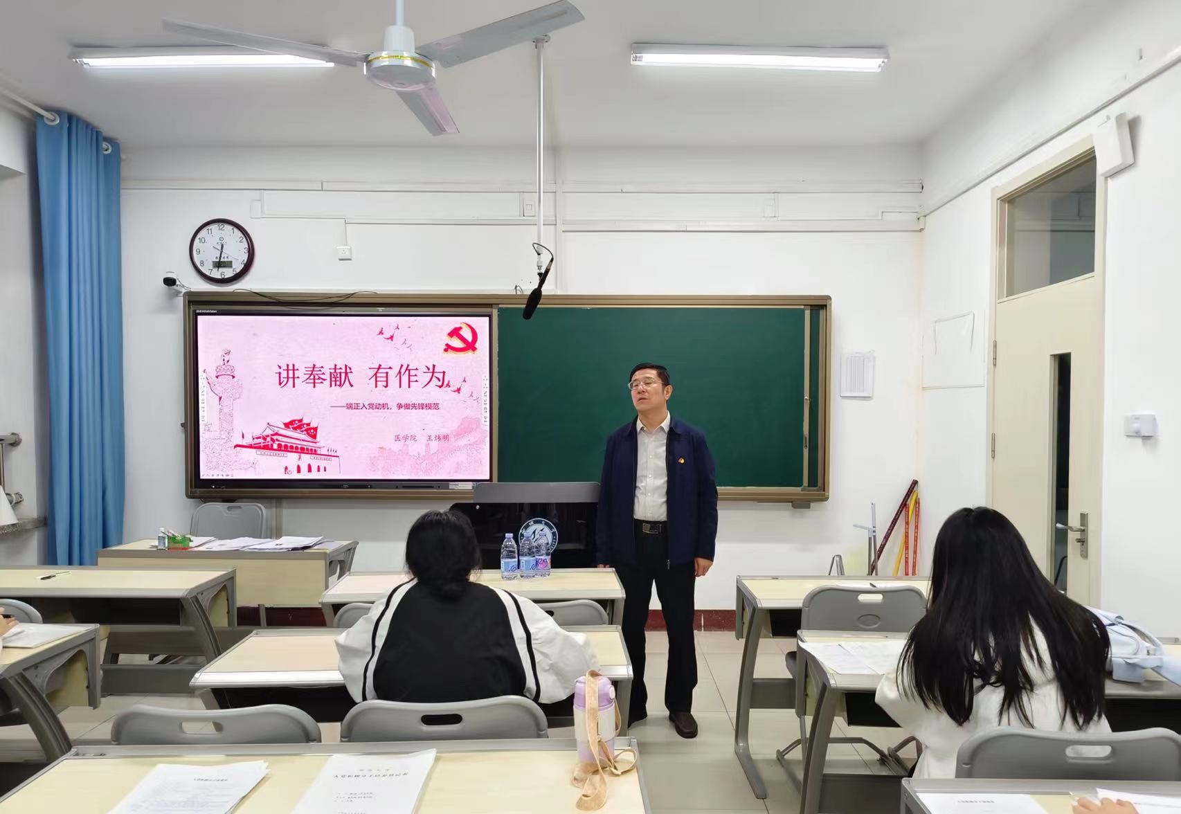 王炜明带领大家深入挖掘入党誓词的时代内涵,明晰合格党员肩负的责任担当。他从“奉献责任担当是共产党员的基本素质”“当代大学生应该如何端正入党动机”两个方面对大家展开授课。他提到入党积极分子要在学习生活工作中发扬吃苦在前,享受在后的奉献担当精神,实事求是,攻坚克难,以党员身份的高标准严格要求自己。其次他强调端正入党动机的重要性,不论组织上是否入了党,都应做到首先在思想上真正入党,而且要长期注意检查自己的入党动机。