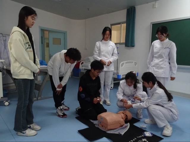 为热烈庆祝聊大建校50周年,凝练学院文化,凝聚学院共识,10月29日上午,9728太阳集团于东校校医院三楼开展急救知识和技能培训活动,9728太阳集团“医”心向阳服务队成员与药学院部分同学共同参与。
