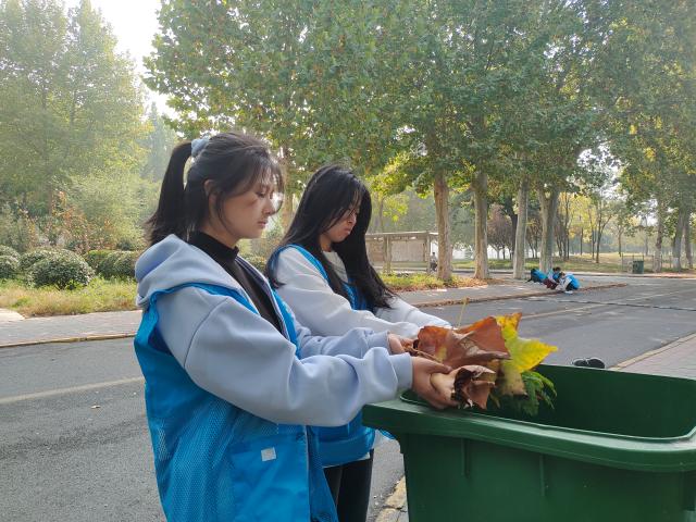 志愿者们身穿蓝色志愿马甲在指定地点集合,在组织者的指挥下,志愿者们自由组队后加入清理校园环境卫生的队伍中。志愿者们分工明确,密切配合,在一号办公楼、翰苑餐厅、博苑餐厅的道路两旁捡拾落叶、清扫垃圾。活动现场井然有序,同学们精神饱满、富有热情,对每一处角落都进行细致的清理,最大化做到不漏掉一个角落、不遗留一块垃圾、不忽视一片落叶,将周边的环境清理得干净整洁。活动结束后,同学们将活动过程中清扫的垃圾进行统一的处理。本次志愿活动,志愿者们充分展现不怕苦、不怕累的实干精神,用实际行动践行着志愿服务精神,发扬良好的团队精神。