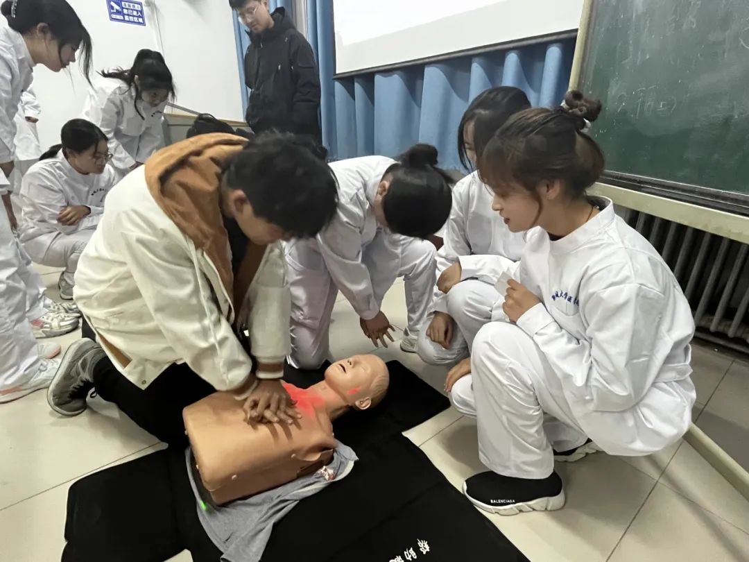 用好一双手,就能救人命。本次急救知识宣讲分为理论知识讲解和实践操作两个环节。主讲人通过PPT与视频相结合的形式,生动形象地讲解了心肺复苏和海姆立克的理论知识,丰富学员们的急救知识储备,使大家了解“黄金四分钟”的重要性,并结合“石头剪刀布”小游戏帮助学员们简单记忆。服务队成员默契配合,对两个急救知识的操作要领进行一一讲解,以过硬的专业知识,对各个操作进行示范。实操环节,服务队成员耐心指导学员们进行胸外按压和人工呼吸,及时指出学员们在训练中出现的错误,与学员们积极互动,现场气氛活跃,让学员们更好地掌握急救的基本要领。