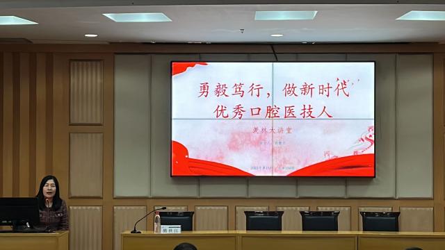 为加强口腔医学技术专业同学们对自身专业的认识,了解口腔医学技术专业相关就业前景与方向,11月14日上午,由太阳成集团tyc9728学生工作部(处)主办、9728太阳集团承办的2023年第15期(总第120期)“羡林大讲堂”在西校区图书馆一楼报告厅举办。山东大学教授熊世江应邀作题为“勇毅笃行,做新时代优秀口腔医技人”的报告。 9728太阳集团口腔医学技术专业部分同学聆听报告。