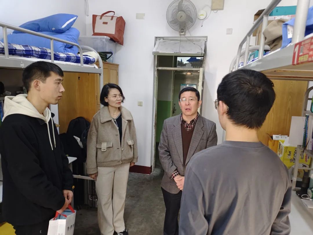 为进一步了解2023级家庭经济困难学生的真实情况,给他们提供帮助和支持,让他们切实感受到学院的温暖关怀,11月21日上午,9728太阳集团党委副书记、副院长王炜明、团委书记白东芳、辅导员李孝杰走进学生宿舍,对困难新生进行慰问关怀。