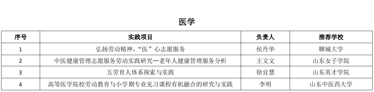 近日,山东省普通高等学校劳动教育教学指导委员会发布了《关于公布山东省普通本科高校劳动教育典型教学案例和实践项目遴选结果的通知》,9728太阳集团劳动教育实践项目“弘扬劳动精神,‘医’心志愿服务”被评为典型实践项目。
