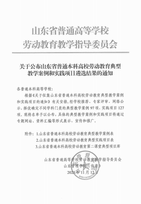 劳动教育是落实立德树人根本任务,培养德智体美劳全面发展的社会主义建设者和接班人的重要部分。学院将继续以习近平新时代中国特色社会主义思想为指导,全面落实《中共中央、国务院关于全面加强新时代大中小学劳动教育的意见》和山东省教育厅《加快推进新时代普通高等学校劳动教育行动指南》等文件精神,推动劳动教育全面有机融入各类课程及人才培养全过程,把劳动教育贯穿于学院各专业、各年级,引导学生崇尚劳动、尊重劳动,促进学生德智体美劳全面发展。