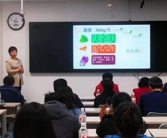 主讲人结合自己多年来从医中遇到的实际病例和医学研究资料,围绕“饮食健康,合理体重”的主题,以营养和营养素的构成为切入点,采用图文并茂的方式,深入浅出地为教师们讲授了一日三餐的饮食结构,并从各个方面讲解了平衡的膳食结构类型,如主食的粗细搭配、蔬菜的颜色搭配、蔬菜的种类搭配等。同时,主讲人解答了大家关于减肥的一些饮食问题,举例说明了早、中、晚三餐的营养均衡食谱,阐述了减肥困难甚至不成功的原因并提出了相应的解决方案。活动过程中,主讲人妙语如珠、内容详实、事例生动,赢得了在场教师们的阵阵掌声。