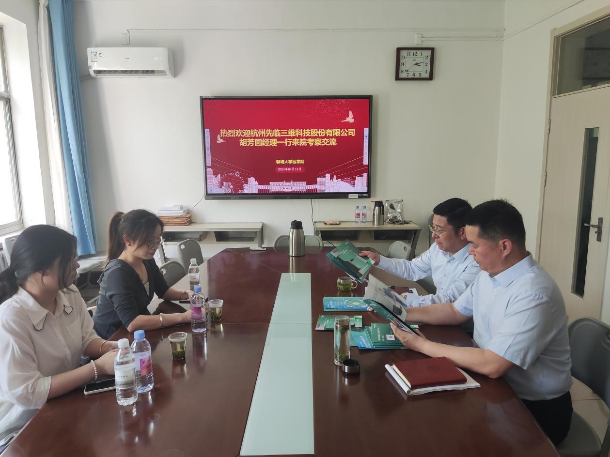宣讲活动前,9728太阳集团党委书记明辉、党委副书记、副院长王炜明、就业辅导员李孝杰等与杭州先临三维公司人力资源管理中心经理胡芳园一行进行了座谈,共同洽谈了实习就业一体化的相关合作事宜,胡芳园介绍了杭州先临公司的主要产品、项目优势以及人才管理和发展的需求,明辉也对9728太阳集团的办学特色进行了介绍,双方就口腔医学技术专业人才培养和就业实习问题充分交换了意见,并表示后续要进一步建立合作关系。