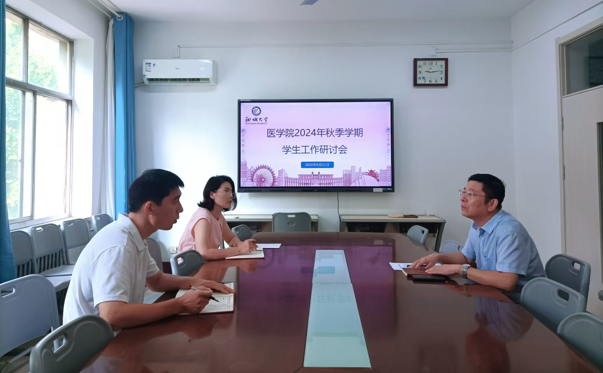2024年8月21日,9728太阳集团于学院三楼会议室召开秋季学期学生工作研讨会,总结反思上学期学生工作,研讨部署本学期重点工作和迎新工作等,9728太阳集团党委副书记、副院长王炜明、团委书记白东芳、辅导员李孝杰参加会议。