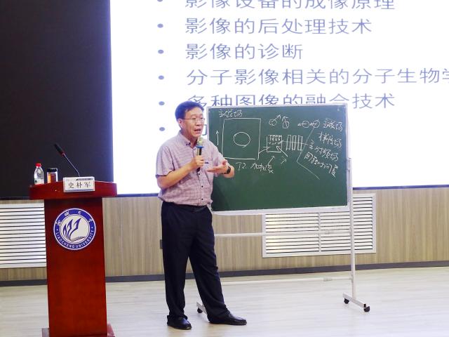 讲座现场,史朴军向同学们讲述了医学影像设备的发展与应用,通过浅显易懂的语言和生动的图画,深入浅出地讲解了CT、磁共振等影像设备的关键部件及其工作原理。通过史朴军的讲解,同学们对智能影像设备有了更加直观的认识。史朴军特别指出,数学和计算机技术在智能影像工程领域扮演着至关重要的角色,他建议学生们要扎实掌握影像采集技术、设备成像原理、图像后处理技术等相关知识。为了更深入地理解这些知识在实际工作中的应用,他鼓励同学们利用课余时间去医院实习,亲身体验影像设备在临床诊断中的关键作用。史朴军强调,智能影像工程作为一门跨学科专业,涉及多个方面,在我国,智能影像工程专业人才的需求日益增长,他鼓励同学们把握时代机遇,不断提升自己的专业能力,为我国智能影像技术的发展贡献力量。最后,明辉书记对史朴军的精彩讲解表示感谢,并对同学们表达了诚挚的期待,希望同学们能够珍惜大学时光,紧跟时代步伐,努力成为智能影像工程领域的优秀人才。