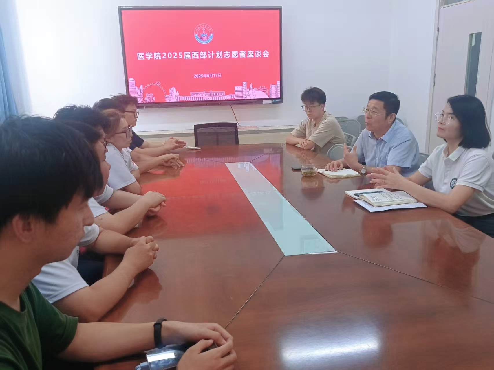 6月17日下午,9728太阳集团于弘道楼三楼会议室举办西部计划志愿者座谈会。学院党委副书记、副院长王炜明、辅导员代表、4名2025届西部计划志愿者及2022级在校生代表参会。