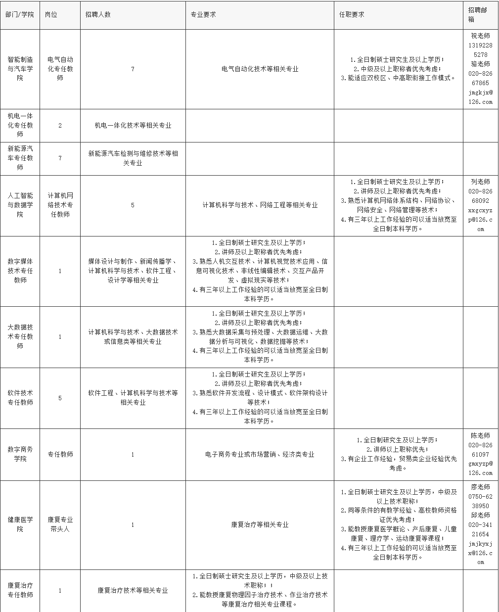 学校以先进的办学理念、雄厚的办学实力、科学的培养方案、良好的培养质量赢得了社会各界的广泛赞誉。经过十五年的建设和发展,学校综合实力明显增强,办学水平显著提高,学校先后获得全国示范性职业院校、全国民办职业院校人才培养创新奖、全国最具影响力民办高等院校、全国特色民办先进集体、中国职业教育就业百强、广东省最受高中生关注高职院校、广东省最具社会影响力高职院校、广东省红十字系统先进单位、广东省国防教育特色学校、广东当代优秀民办学校、广东省绿色学校、广东省平安校园、广州市知识产权试点学校、广州市院校就业创业e站等荣誉。 为适应学校发展及师资队伍建设的需要,现面向各大高校和社会公开招聘优秀人才,热忱欢迎立志于教育事业的优秀人才加入我校人才战略联盟,齐襄共举,筑梦未来!