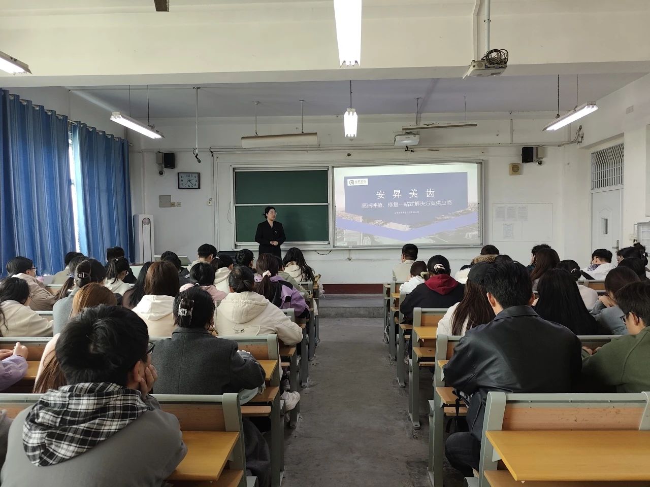 首先,徐金艳向同学们阐述了举办此次宣讲会的重要目的,着重指出当前就业市场的激烈竞争态势,鼓励同学们珍惜机会,主动出击,积极投身就业浪潮。随后,徐金艳和孙慧分别对自身企业进行了全面而细致的介绍,涵盖公司的发展历程、业务范畴、在口腔医学领域的影响力、员工培养体系、薪资福利待遇以及独特的企业文化,并指出随着人们对口腔健康重视程度的不断提升,口腔医学技术行业正迎来前所未有的发展机遇,尤其在一些医疗资源丰富的大城市,就业前景极为广阔,吸引了众多毕业生的关注。